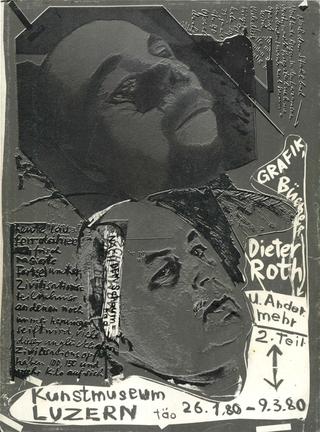 Blurring the line between process and product, Roth embraced accident, mutation, and mutability in his work. Famous for his use of biodegradable materials, his first exhibition in the United States, Staple Cheese: A Race (1970), displayed pictures made of cheese with measuring lines to track their progress as they slid down the gallery wall. At another series of shows, Roth created manufacturing instructions, allowing visitors to produce their own books, or baked goods. In his later career, Roth achieved widespread acclaim, representing Switzerland at the Venice Biennale in 1992, and was featured in a retrospective at the MoMA. He collaborated with his son, Björn Roth (German, b. 1961), on many of his later works. Roth died in 1998 in Basel, Switzerland.