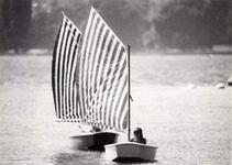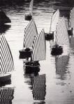 The title Voile/Toile, Toile/Voile, immediately presents this catalogue as a description and representation of the performative event that Daniel Buren conceived and realized in concomitance with his exhibition. It was a question of a regatta of small sailboats—optimist dinghies—rigged with striped, colored sails produced by the artist himself. At the conclusion of the regatta, the sails were removed from the boats and installed in the halls of the museum, and were thus transformed, exactly as announced by the catalogue’s title, from sails into canvases: from voiles into toiles. The artistic strategy of Daniel Buren (along with Michel Parmentier, Olivier Mosset and Niele Toroni, all of whom were active in Paris at the end of the 1960s) was in fact quite polemic, and deployed a true and proper conceptual criticism of traditional painting, thus exploring new modes, more anonymous and industrial, of artistic composition. The catalogue is enriched by photos and texts which were taken and written by Buren himself.