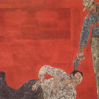Leon Golub, whose powerful tableaux of human cruelty and suffering MK was the first to present in a museum on the European continent in 1987 in Lucerne and Hamburg newer paintings of the ‘70and ‘80. In New York Golub showed his earlier exhibits, works from his intense series Shields and Gigantomachy of the late ‘60 and ‘70.